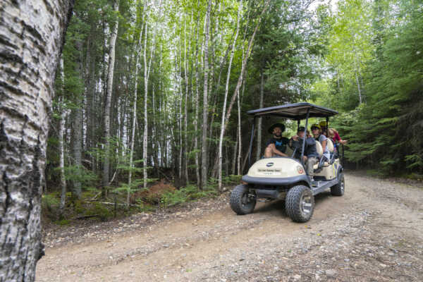 This 1.5 – 2 hour, guided adventure begins at our basecamp which is located at Elk Ridge Resort, five minutes away from the townsite of Waskesiu Lake, SK. You will check-in and then begin the harnessing and safety briefing session. From there, we head out towards the zipline tour on our custom built eco-carts!