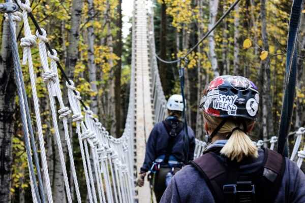 Similar to our Cypress Hills location, this course is more of a “hybrid” between aerial trekking and a zipline canopy tour. Although there is very little hiking involved during this adventure, our tours do require guests to complete several vertical climbs to conquer the course such as inclined skybridges and ship ladders!